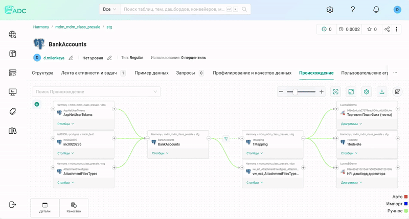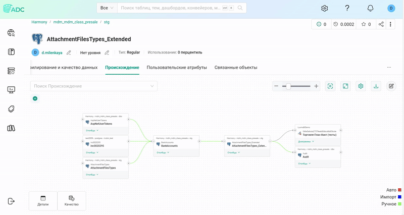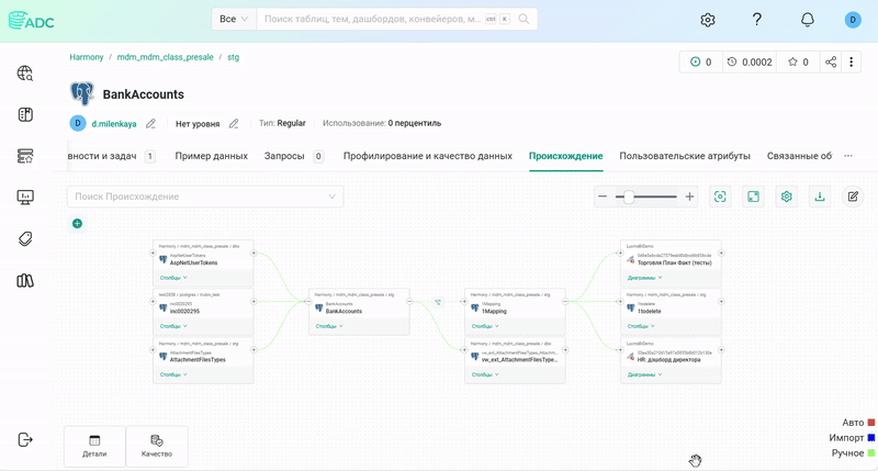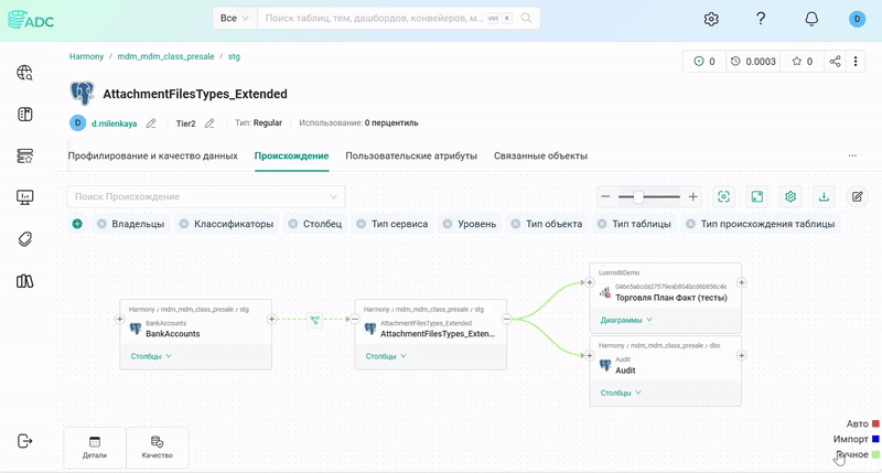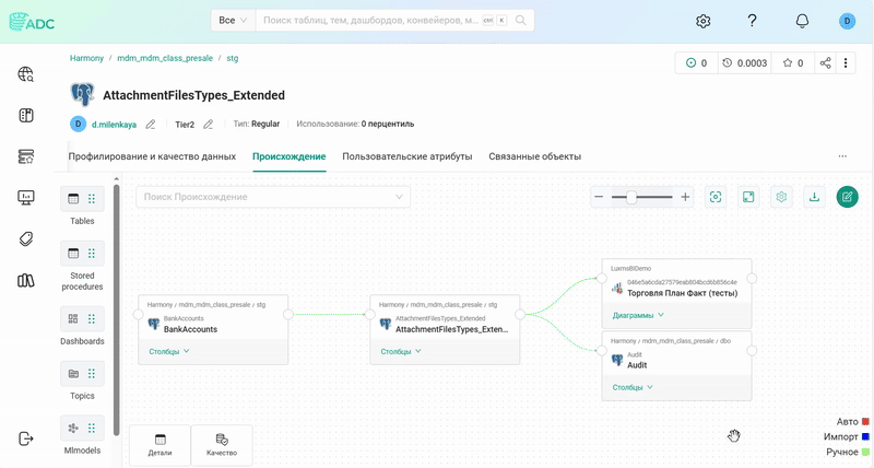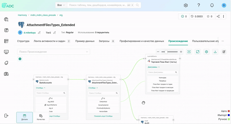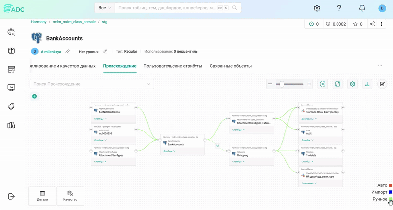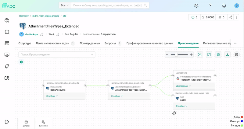 В релизе 0.8.5 вышли крупные обновления функционала Data lineage в системе ADC, направленные на улучшение удобства работы с диаграммами происхождения данных, а также на развитие функционала Data lineage.