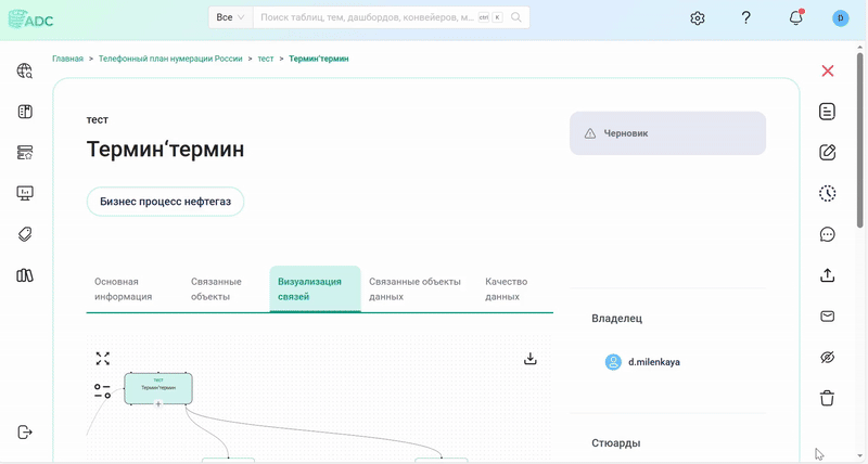 - Оптимизировано поведение: при обновлении полного наименования глоссария/предметной области объекты глоссария доступны в представлении объектов глоссария;